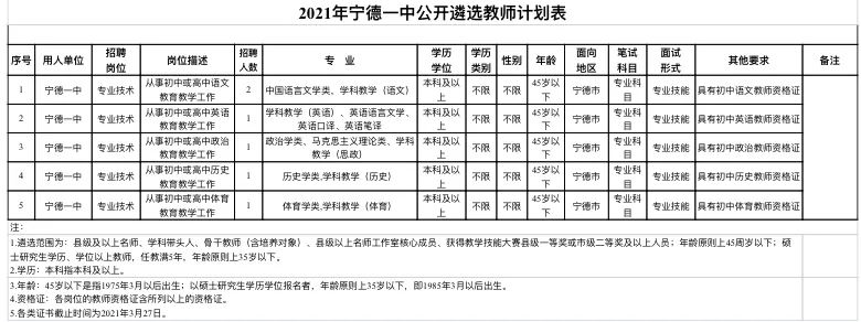 记者从市教育局获悉,为筹建复办宁德一中初中部,目前正面向宁德全市公办中小学在职教师,公开遴选6名教育教学岗位工作人员。3月21日-3月27日17时30分可报名,逾期不予补报。